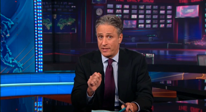 Jon Stewart is clearly tired of covering the endless 2012 campaign antics. On Wednesday, while covering Donald Trump’s latest escapade and Sarah Palin decrying President Obama’s “shuck and jive” on Libya, the “Daily Show’ host got his footage confused.