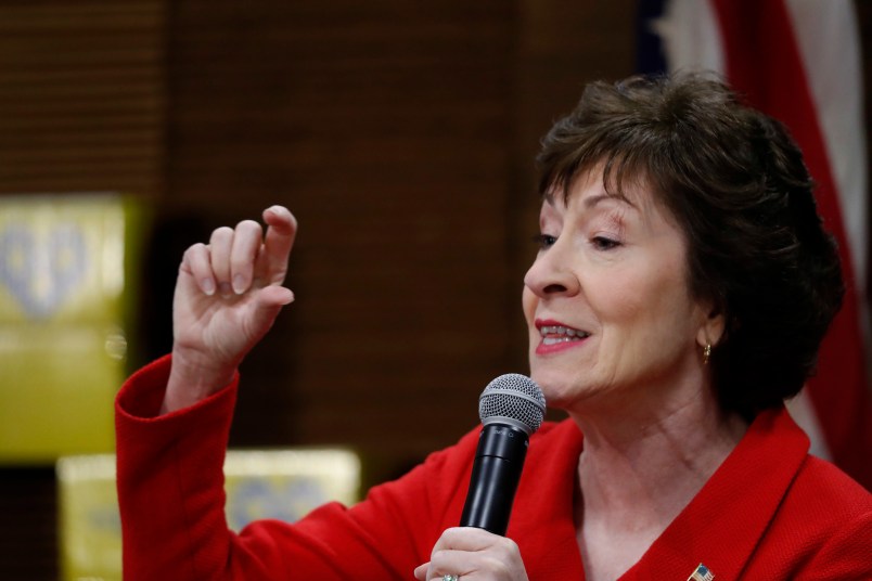 Sen. Susan Collins (R-ME) walked out of a lunch meeting Tuesday with President Trump and Senate Republicans with a broad smile on her face, telling reporters that promises from the president to support two separate health care bills left her “encouraged” and more amenable to voting to repeal Obamacare’s individual mandate—something just weeks ago she warned would devastate the middle class.