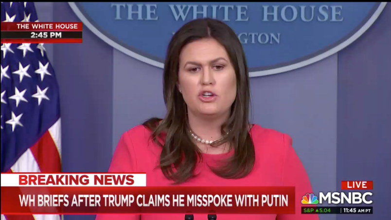 When asked about the arrest of Mariia Butina, the Russian national charged with acting as a foreign agent, press secretary Sarah Huckabee Sanders pivoted to the brief frenzy of speculation earlier this week that Butina was present during an Oval Office meeting with President Trump.
