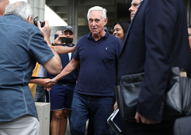 Stone, who faces charges of obstruction, witness tampering, and lying to Congress, also claimed advance knowledge of the contents of the hack of Democrats’ emails before Wikileaks began to release them in advance of the 2016 election.