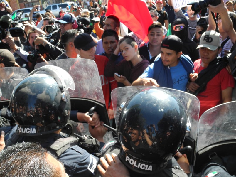 “We don’t want them in Tijuana,” protesters shouted.