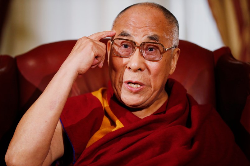 Asked to comment on climate change — which Trump has denounced as a hoax — the Dalai Lama said he was heartened by the turn to alternative energy sources such as solar and wind power.